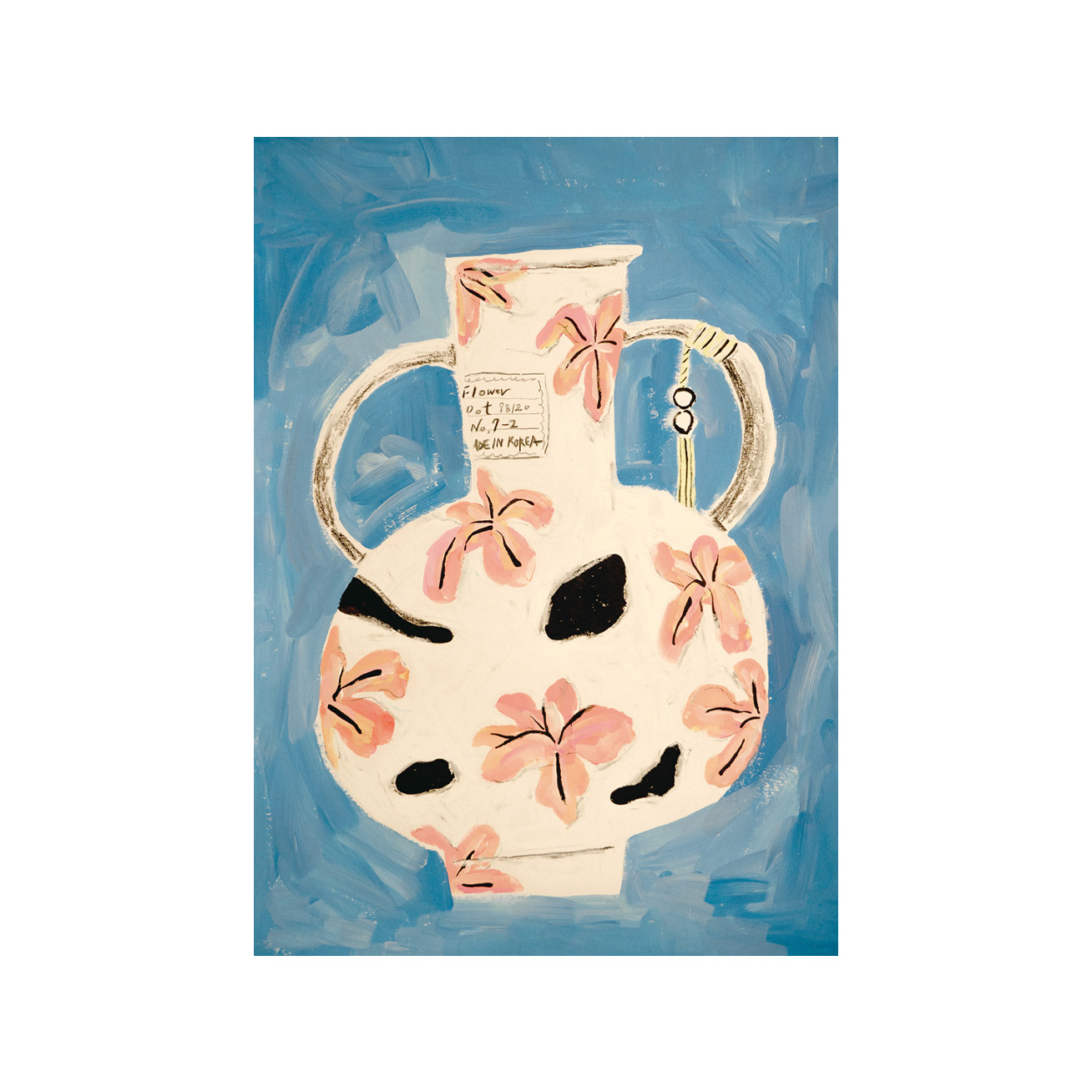 빈티지 꽃무늬 화병 88120. 검정 반점과 분홍 꽃이 어우러진 오래된 화병.