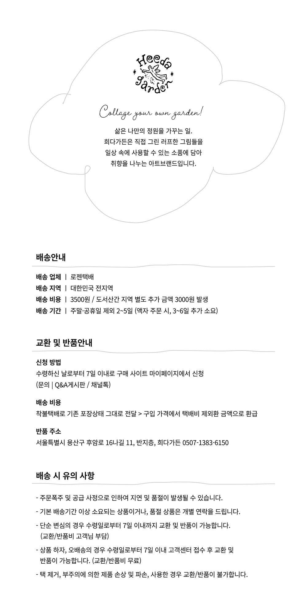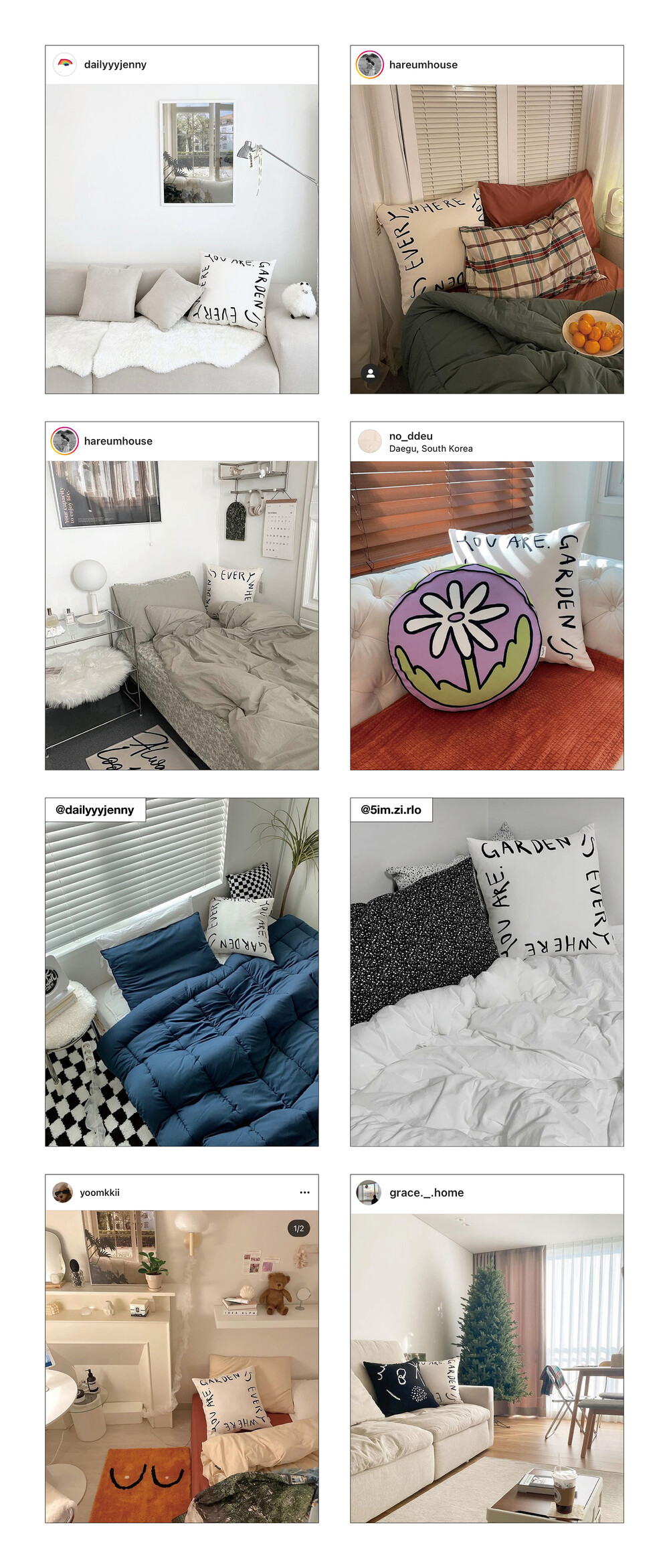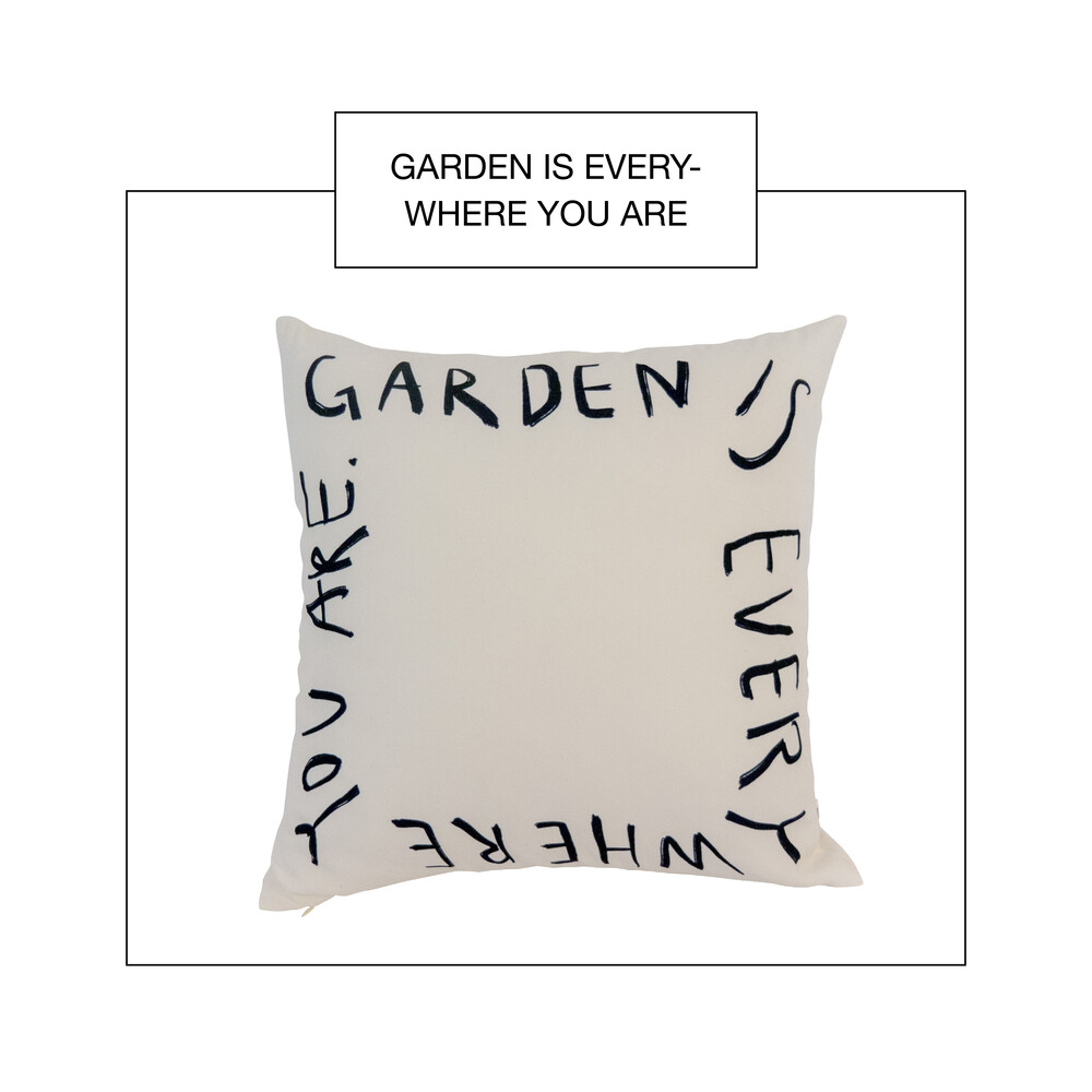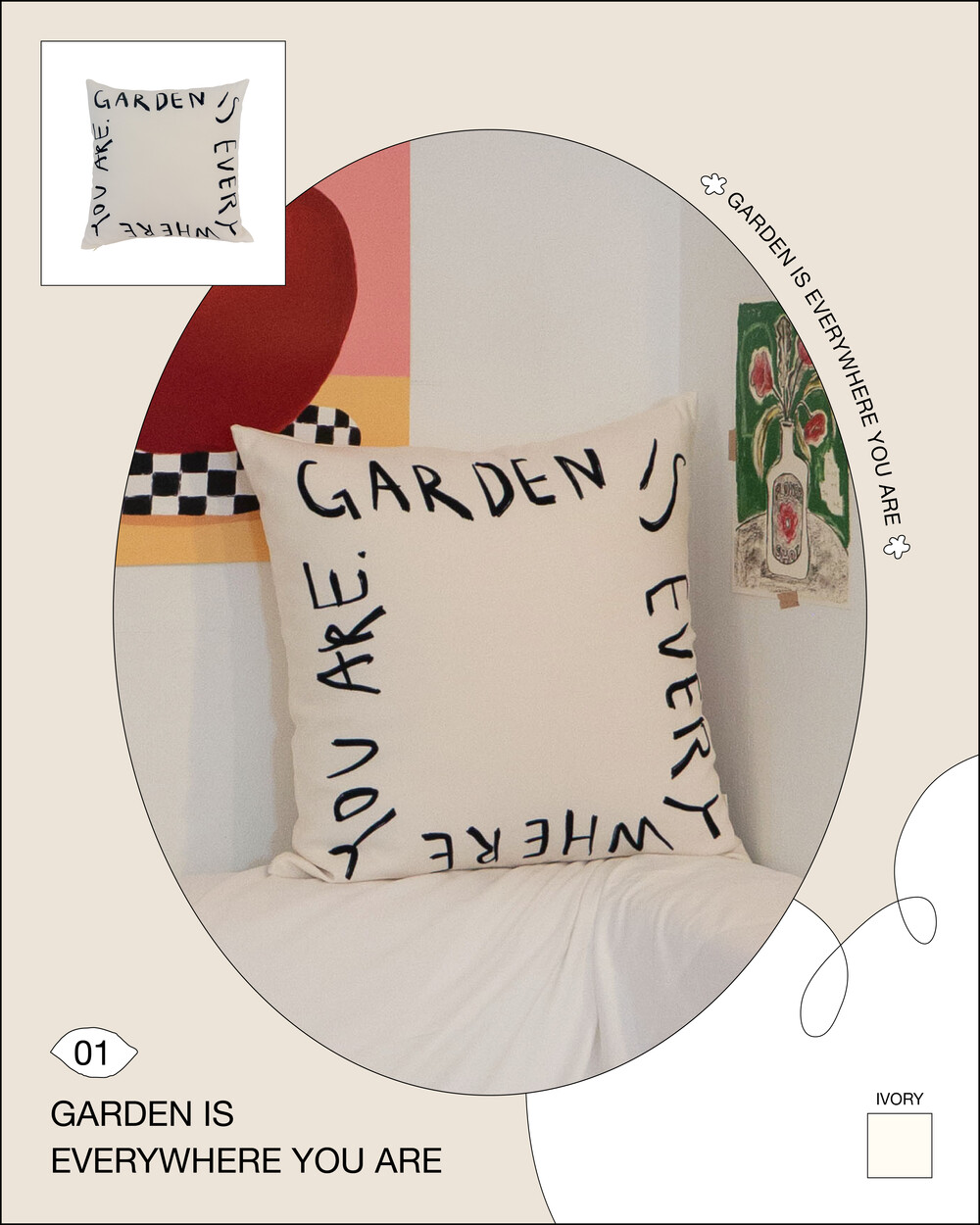 'Garden is everywhere you are.' 라고 쓰여진 쿠션을 첫번째로 소개드리는 이번 시리즈는 '우리가 머무는 공간은 스스로가 마음먹은 대로 자라나고 가꾸어지는 정원과 같다'라는 생각을 시작으로 만들어졌습니다. 이 쿠션과 함께 당신의 공간을 정원으로 만들어 보세요.