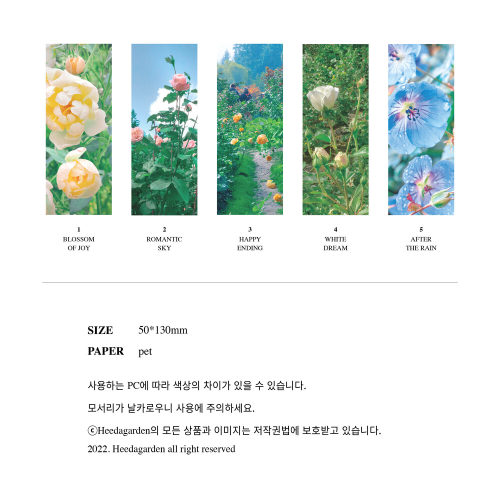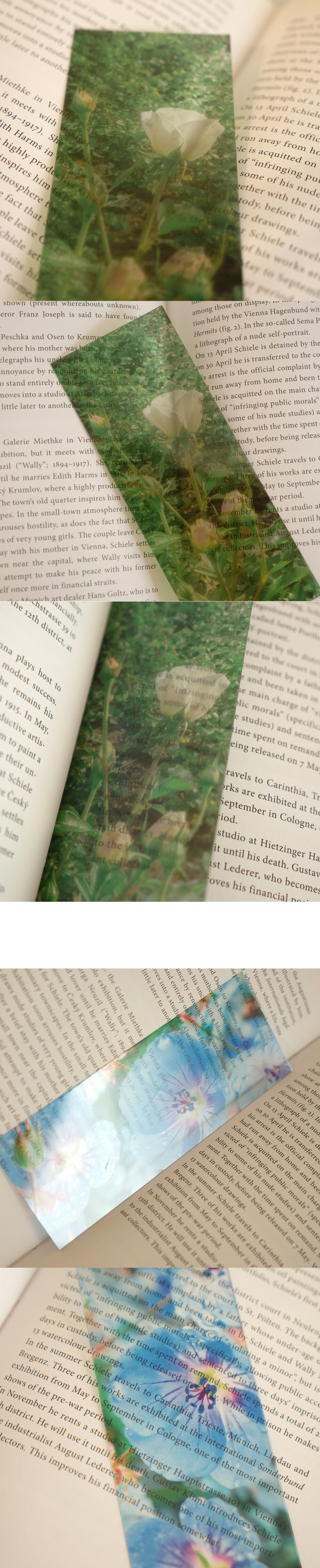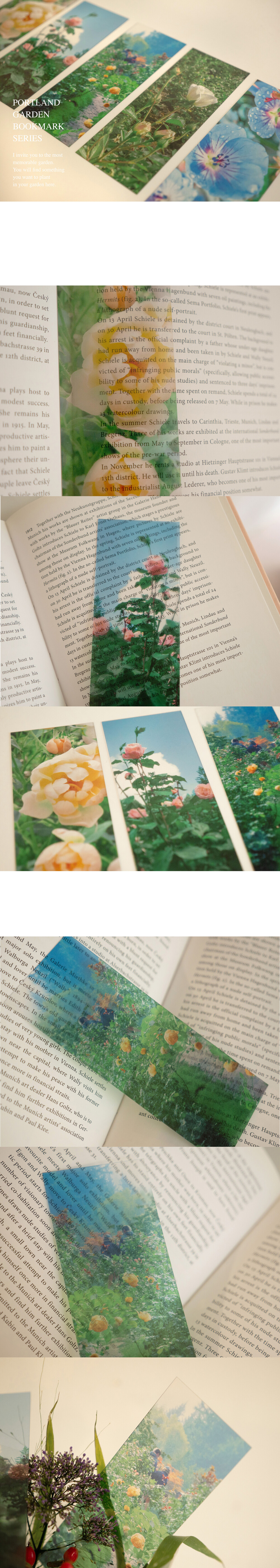 투명한 책갈피 속 사진이 빛을 받아 책에 비칠 때 우리는 정원으로 여행을 떠날 거예요.