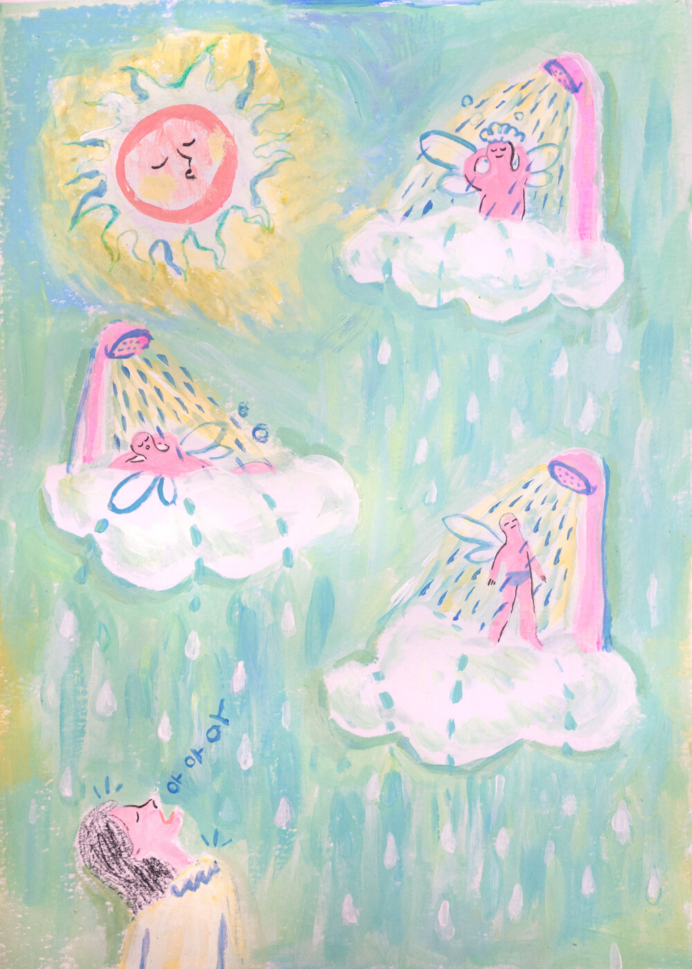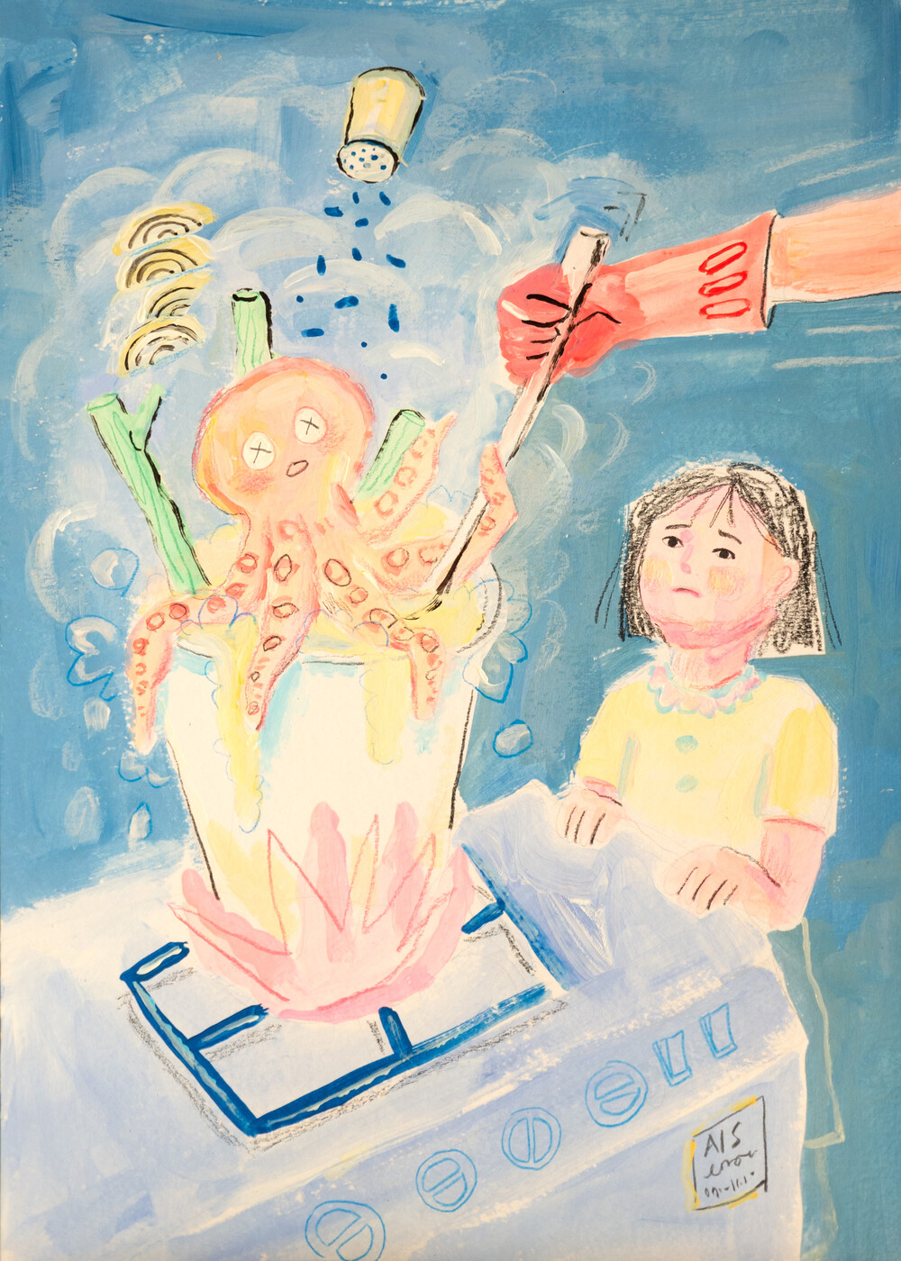 주인공 소녀는 좋아하는 언니가 학원에 가버리고 나면 집에서 함께 놀 사람이 없어 심심하다. 집에 있는 엄마는 항상 잔소리가 많고 맨날 문어가 들어간 해물탕만 만드는 것이 소녀의 불만이다. 비가 오는 어느 날, 소녀는 옥상으로의 탈주를 결심한다.